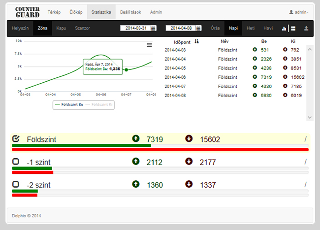 A Dolphio Technologies Kft. által kifejlesztett CounterGuard termékcsalád többéves kutatás eredménye, mely már sikeresen helytállt a vendéglátóipartól kezdve a tömegközlekedésig. A technológia lényege, hogy rejtett szenzorokat rögzítenek az ajtók fölé, melyek háromdimenziós képet készítenek a látott területről. Az alakfelismerő algoritmus felismeri a fejeket, a képet pedig valós időben dolgozza fel, így nincs szükség a felvételek rögzítésére – ezzel költséget kímélve, és a személyiségi jogokat tiszteletben tartva.