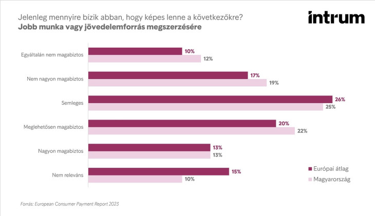 Az anyagi stressz mellett a megkérdezettek jelentős része kételkedik abban, hogy képes-e változtatni pénzügyi helyzetén, ami tovább súlyosbítja a problémát. A válaszadók negatívan látják a helyzetüket, a magyarok azonban az átlaghoz képest is borúlátóbbak: míg az európaiak 27 százaléka kételkedik abban, hogy képes lenne jobban fizető állást találni, addig a magyarok 31 százaléka érez így. Nagyfokú határozottságot mutat ebben a kérdésben a Z generáció, mivel 50 százalékuk bízik az előrelépésben. Eközben a baby boomerek kiszorítva érezhetik magukat a munkapiacon, csak 21 százalékuk hisz abban, hogy feljebb léphet. A nyaralásra fordított kiadásokkal kapcsolatban erős bizonytalanságot fejezünk ki: az európaiak átlagosan abban bíznak, hogy megengedhetnek maguknak egy rendes nyaralást, azonban a magyaroknak közel fele (42 százalék) pesszimista ezen a téren, vagyis úgy gondolja, hogy idén nem fog eljutni egy hét napos nyaralásra.