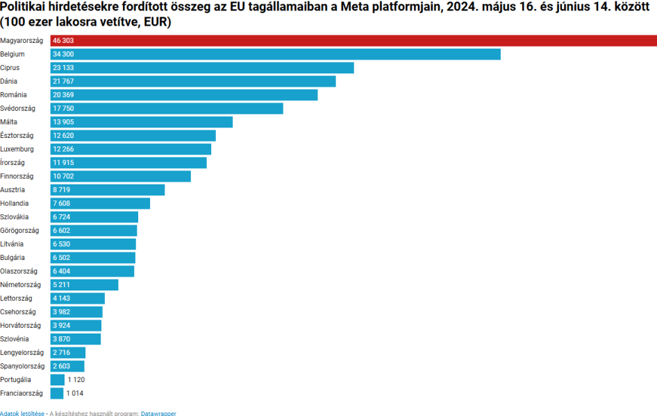 A számok önmagukért beszélnek: a 2022-es parlamenti választás kampányának utolsó másfél hónapjában több mint 3 milliárd forintot költöttek politikai hirdetésekre a Meta platformjain a versenyző pártok. Két évvel később, a 2024-es európai parlamenti és önkormányzati választások során a pártok mintegy 2,5 milliárd forintot fordítottak online politikai hirdetésekre Magyarországon. Ez lakosságarányosan a legmagasabb költés volt az Európai Unióban – ahogy arra Barczikai Fanni rámutatott a Lakmusz.hu elemzésében.