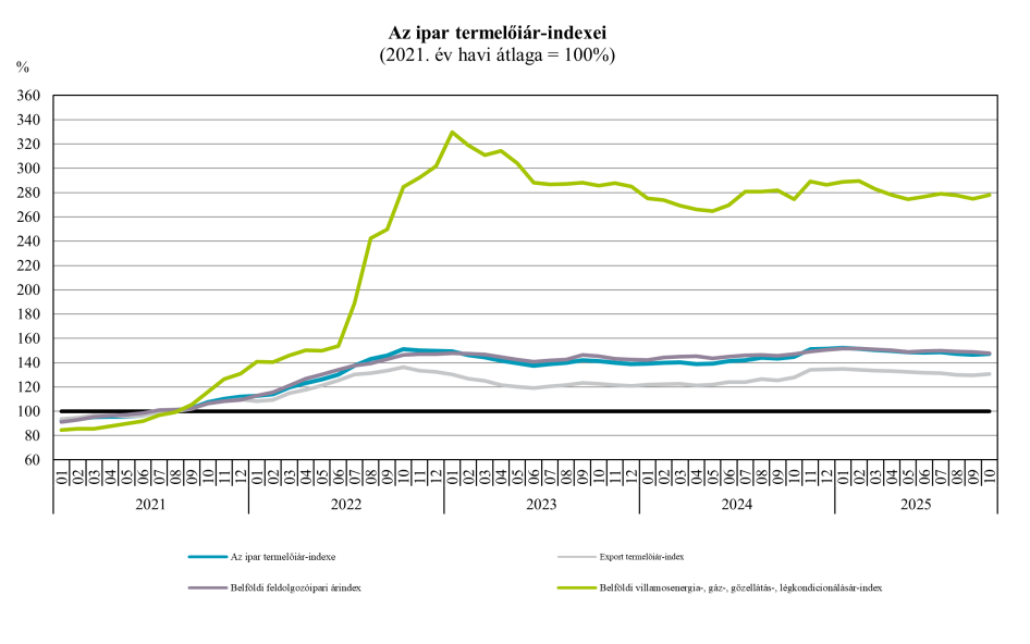 Az előző hónaphoz viszonyítva a belföldi értékesítési árak 0,1 százalékkal mérséklődtek, az exportértékesítési árak 0,7 százalékkal növekedtek, így az ipari termelői árak összességében 0,4 százalékkal magasabbak voltak.