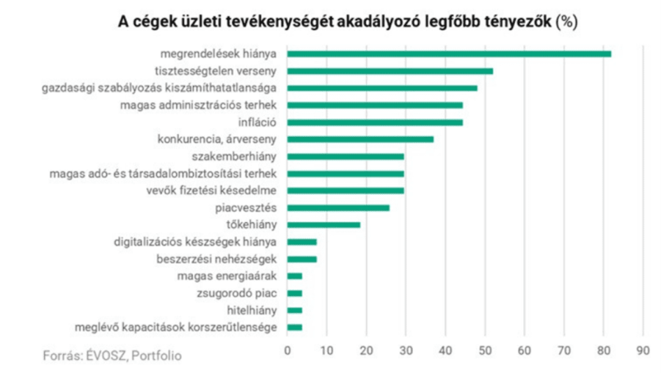 Építési Vállalkozók Országos Szakszövetség felmérése alapján 2024-ben az építőipari vállalkozások felélnek csökkent az árbevétele és 2025-re is csak a vállalkozások negyede számít árbevétel növekedésre. 2025-re a válaszadók 11,1 százaléka vár javulást, 52 százalék csökkenésre számít az árbevétel arányos jövedelmezőséget tekintve. A tevékenységükben a fő akadályozó tényezőként a válaszadók 82 százaléka a megrendelések hiányát emelte ki, ezt követte a tisztességtelen verseny, a harmadik helyen pedig a gazdasági szabályozás kiszámíthatatlansága került. A lánctartozás mértéke a válaszadók 45 százaléka szerint növekedett partnerei körében. Kitörési pontként a lakásépítés- és lakásfelújítás terület mutatkozik.