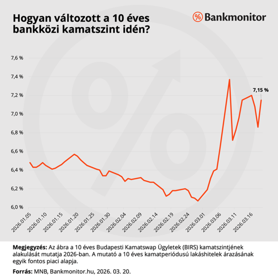 A budapesti bankközi kamatláb az iráni konfliktus kezdete óta érezhető mértékben megugrott. 6,07 százalékos szintről, ahol február 27-én volt. Március 9-én 7,37 százalékos szint3n is járt a mutató. Onnan egy kicsit visszacsúszott, de még március 19-én is 7,15 százalékon áll, ami egy teljes százalékponttal magasabb mint a közel-keleti háború előtt.