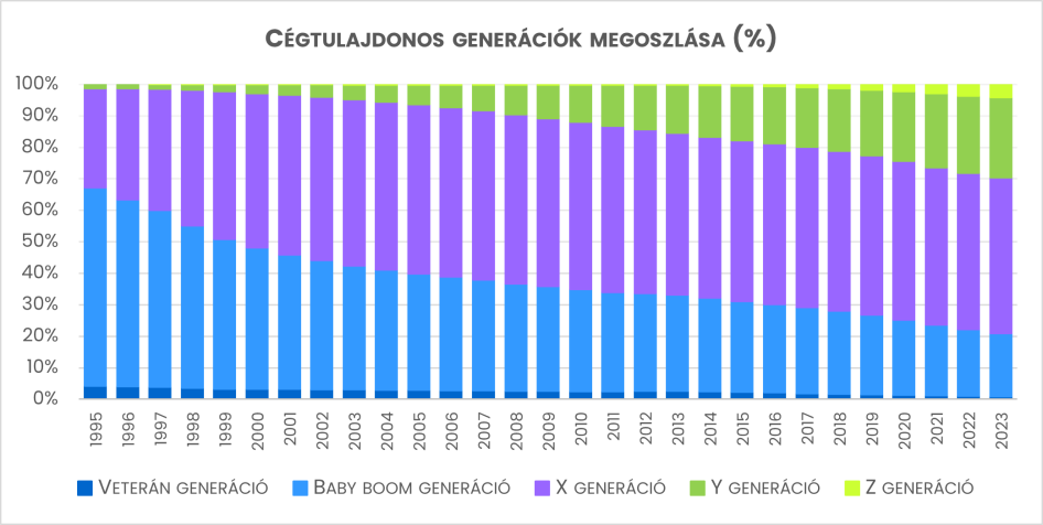 Az adatok szerint a fiatalabb generációk először a tulajdonosi körben jelennek meg nagyobb számban, majd fokozatosan lépnek be a vállalati szféra menedzsmentjébe és a cégjegyzési jogokkal rendelkezők közé. Ez a folyamat különösen erősen megfigyelhető az Y generációnál és az utánuk következő generációknál, akik már beleszülettek a vállalkozások világába.
