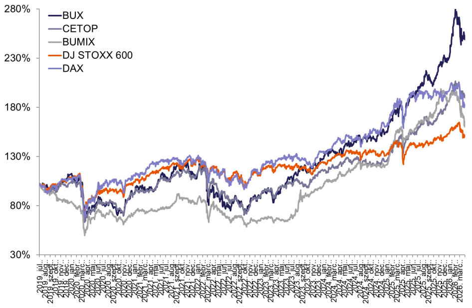 A márciust a fokozódó kockázatkerülés jellemezte a tőkepiacokon. Az Európai Központi Bank (EKB) frissített előrejelzése szerint az eurózóna 2026-os gazdasági növekedése 0,9 százalékra eshet vissza az év során, míg az átlagos infláció 2,6 százalékra nőhet. A befektetői kedvre a nemzetközi gazdaság kilátások alakulása mellett a közel-keleti konfliktus elhúzódása és az energiapiaci turbulencia is negatív hatással voltak.