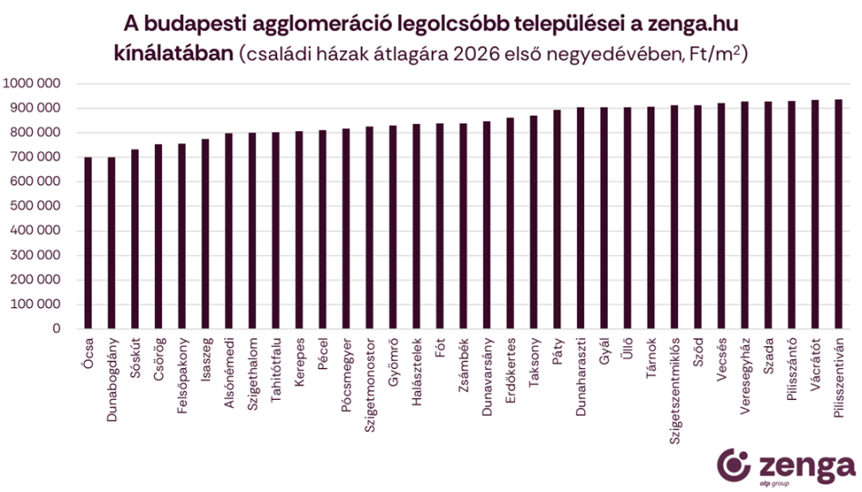 Aki ennél olcsóbban szeretne vásárolni, annak érdemes inkább a főváros délkeleti elővárosaiban nézelődnie. Nemcsak az árak alacsonyabbak itt, hanem a házak is valamivel kisebbek. Ócsán például már négyzetméterenként 700 ezer forintért is széles kínálatból válogathatunk, de Felsőpakony árai sem sokkal magasabbak.