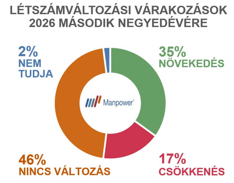 A ManpowerGroup a világ 42 országában, közel 42 ezer munkáltató körében folytatta le negyedéves felmérését, melynek keretében Magyarországon a munkáltatók 540 fős reprezentatív mintájában szereplőket kérdezték meg 2026 második negyedéves munkaerő-felvételi szándékaikról.