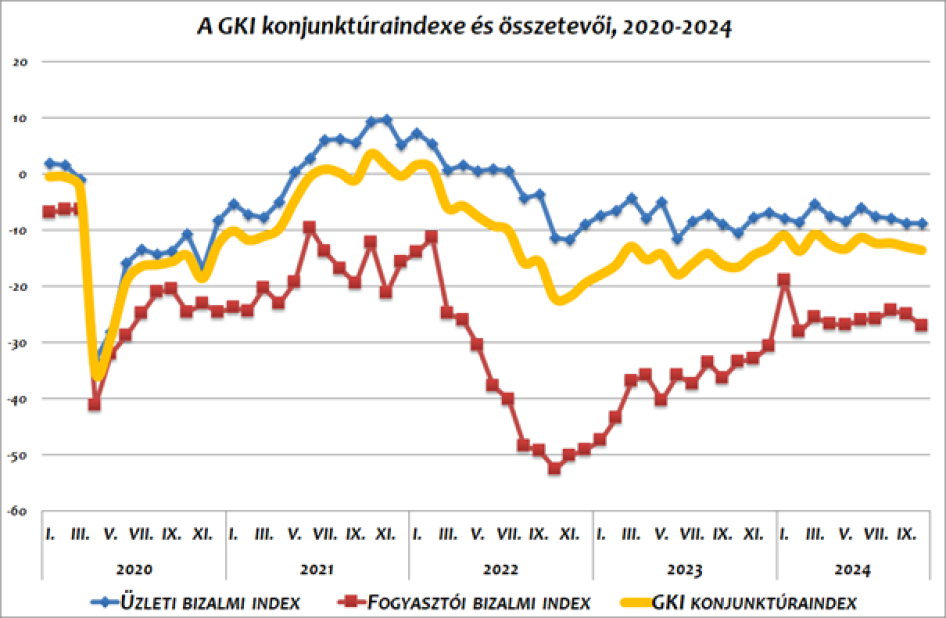 A GKI fogyasztói bizalmi index– a januári-februári jelentős kilengés után – a március-szeptemberi időszakban alig változott. Az októberi 2 pontos csökkenéssel az előző hónaphoz képest e mutató nyolc havi mélypontjára jutott.