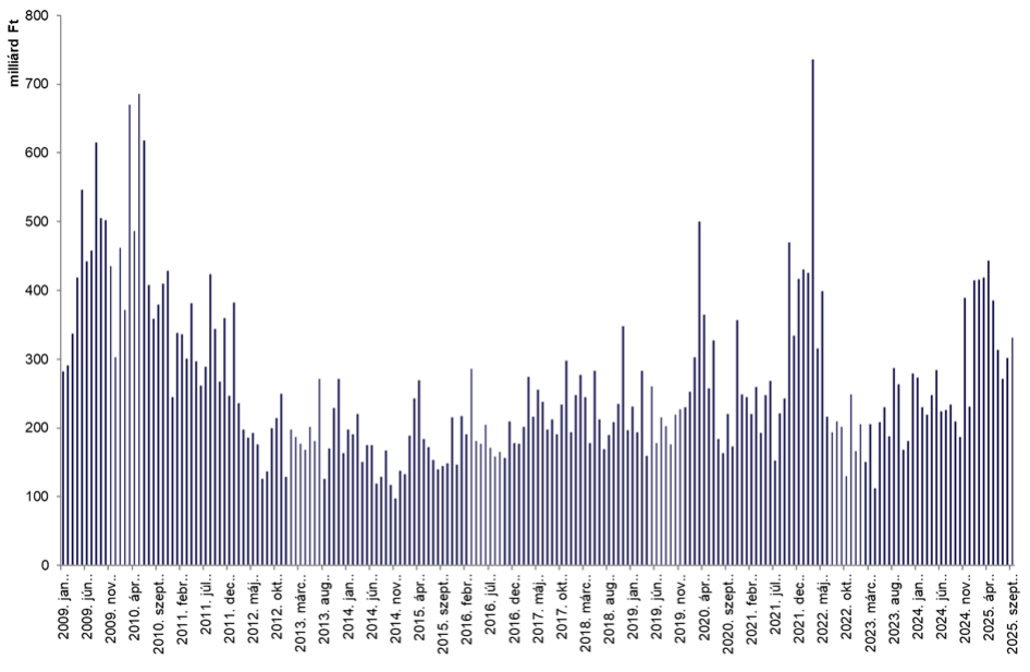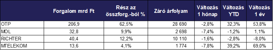 Az azonnali részvénypiac forgalma összesen 330,9 milliárd forintot tett ki, amely a napi átlagot tekintve augusztushoz képest enyhe csökkenést, azaz 15 milliárd forintot jelent.
