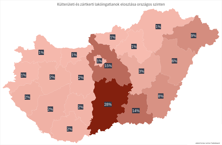 A Lechner Tudásközpont friss adatai szerint Magyarországon több mint 150 ezer külterületi lakóingatlan található, amiből 29 ezer zártkerti besorolású. A négy legnagyobb állományú vármegye messze kiemelkedik az országos mezőnyből: