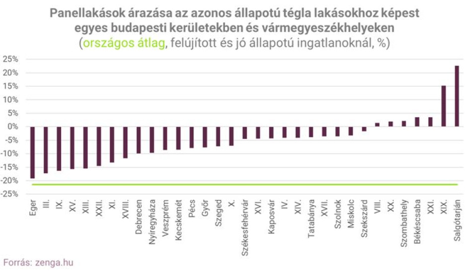 A tégla lakásoknál több mint 20 százalékkal kínálják drágábban a felújított paneleket például Salgótarjánban, de Budapest XIX. kerületében is van egy 15 százalékos többlet.