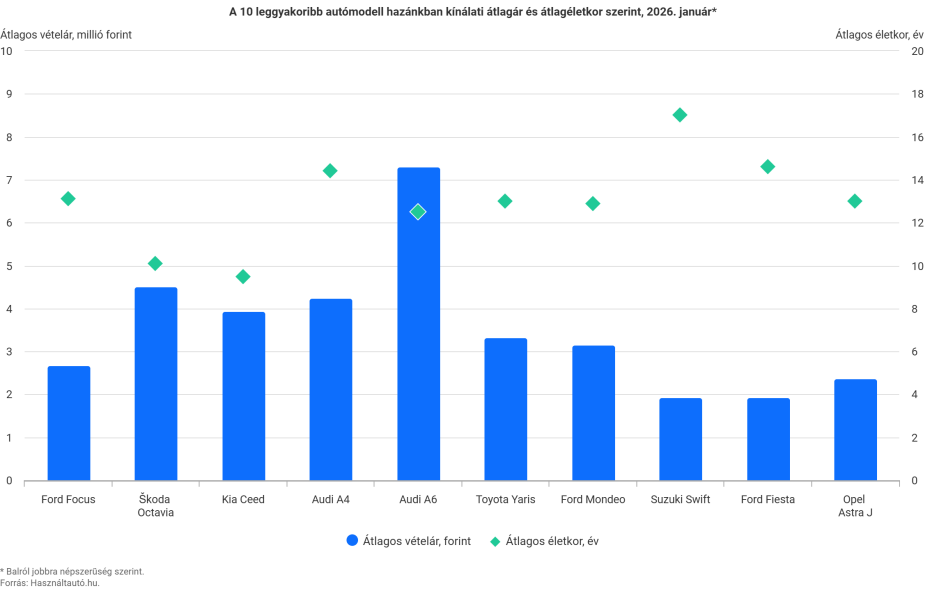 A legnépszerűbb modellek közül az Audi A6 bizonyult a legdrágábbnak 7,3 millió forintos átlagárral, míg a Suzuki Swift 1,9 millió forintos átlaggal a legolcsóbb maradt. A legnagyobb mértékű drágulás ugyanakkor éppen a Swift esetében volt megfigyelhető: átlagára egy év alatt 28,7 százalékkal emelkedett.