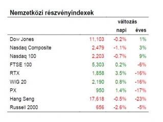 Az elmúlt napok száguldozásai után mára eljött a „rossz" hangulat a piacokra. Persze az előbbiből a magyar piac nem nagyon vette ki a részét, nem tudott együtt mozogni a fejlett piacokkal.